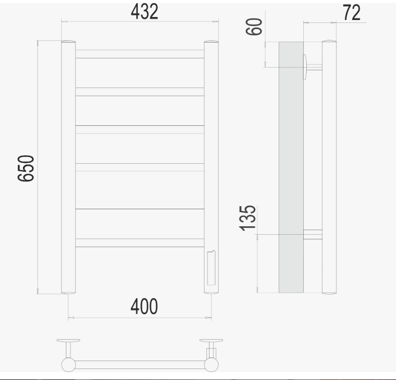Полотенцесушитель Аврора П6 400х650 Электро Порошковый (quick touch) Графит Терминус