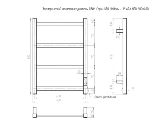 Полотенцесушитель ДВИН J plaza neo 60/40 Электрический (К диммер квадрат Золотой матовый)