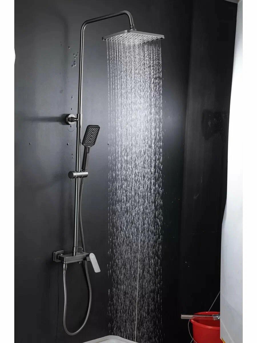 Душевая система со смесителем и тропическим душем Frap F2486-9 оружейная сталь