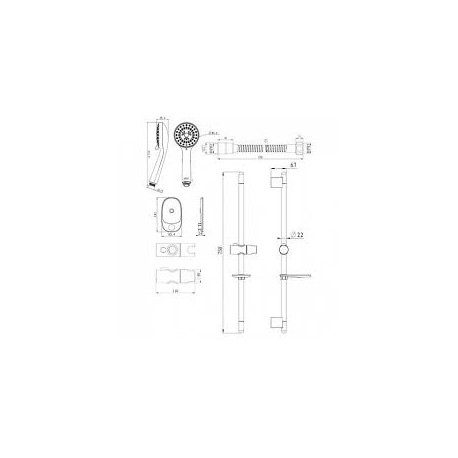 - Комплектация Душевая лейка, Душевой шланг 1500мм, Полочка, Комплект креплений
