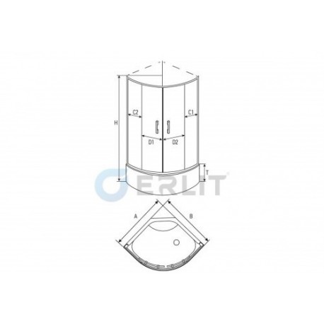 Душевое ограждение с поддоном (серый поддон) 1000х1000х1950 ERLIT ER 0510Т-C4 (КНР)