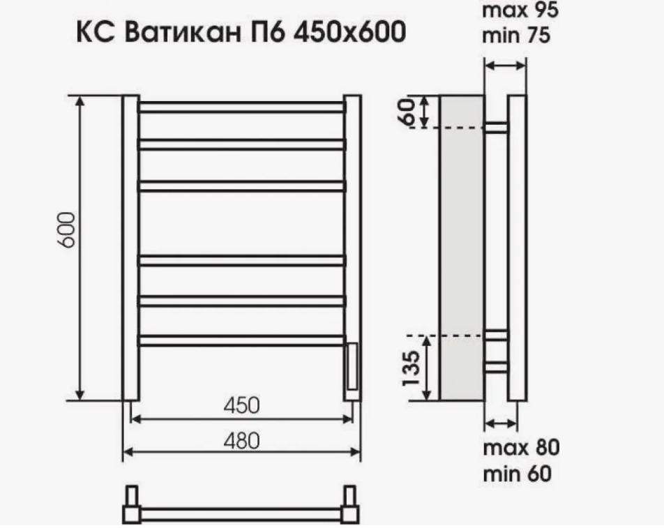 Полотенцесушитель Ватикан П6 450х600 электро ( new встроен диммер) КС графит Терминус