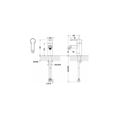 • Длина излива 103 мм
