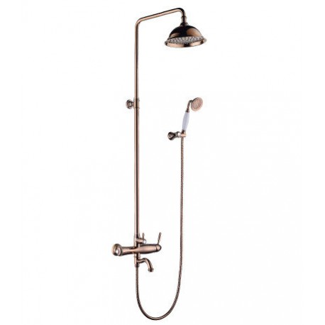 Смеситель для ванны с верх душ лейкой Троп дождь", с пов изли, роз. золото LM 6762 RG "Спарк""