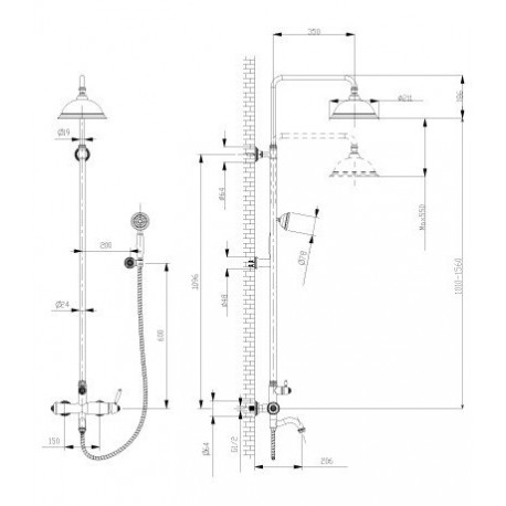 - Комплектация 1-функциональный ручной душ, Душевой шланг 2000 мм, Верхняя поворотная душевая лейка Тропический дождь, Регулируемое по высоте крепление для лейки