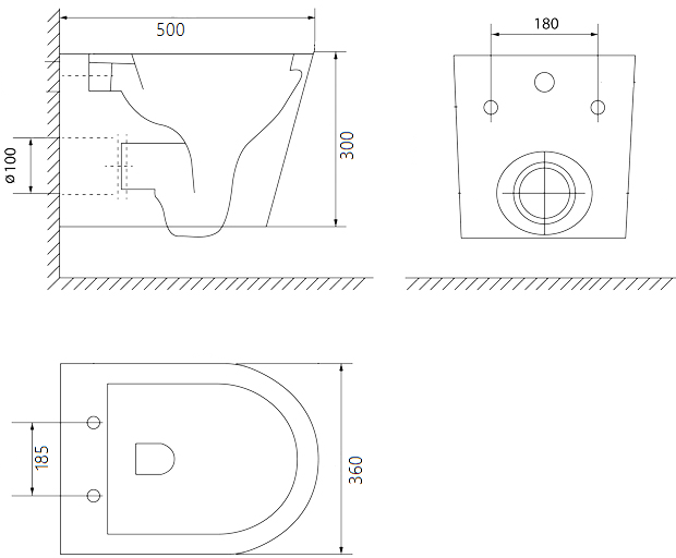 Унитаз подвесной ASUA armatur Riven (500*360*360mm) безободковый с сиденьем