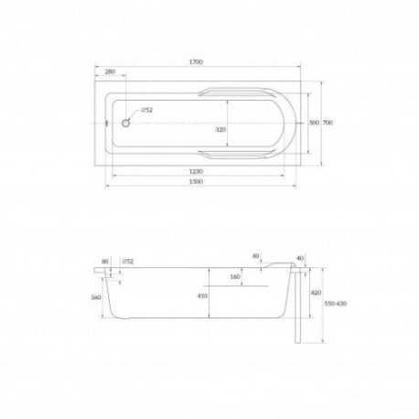 - Ширина ванны 700